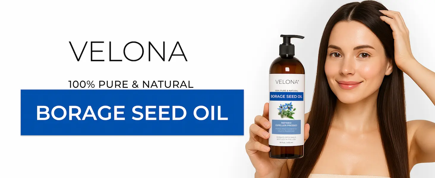 100% Pure and Natural Borage Seed Oil. Refined, expeller pressed, free from additives, fragrance, and synthetic compounds.