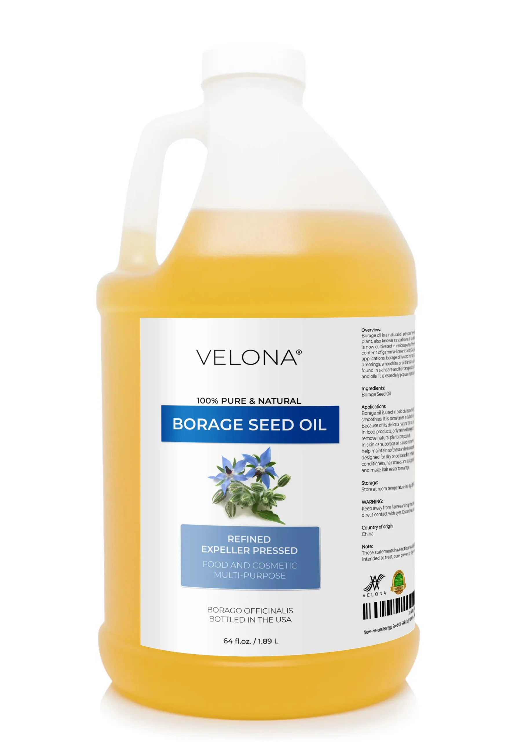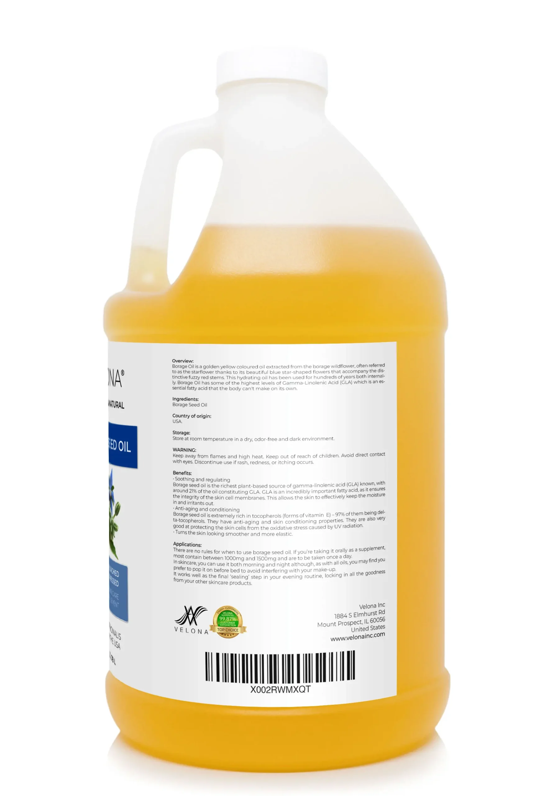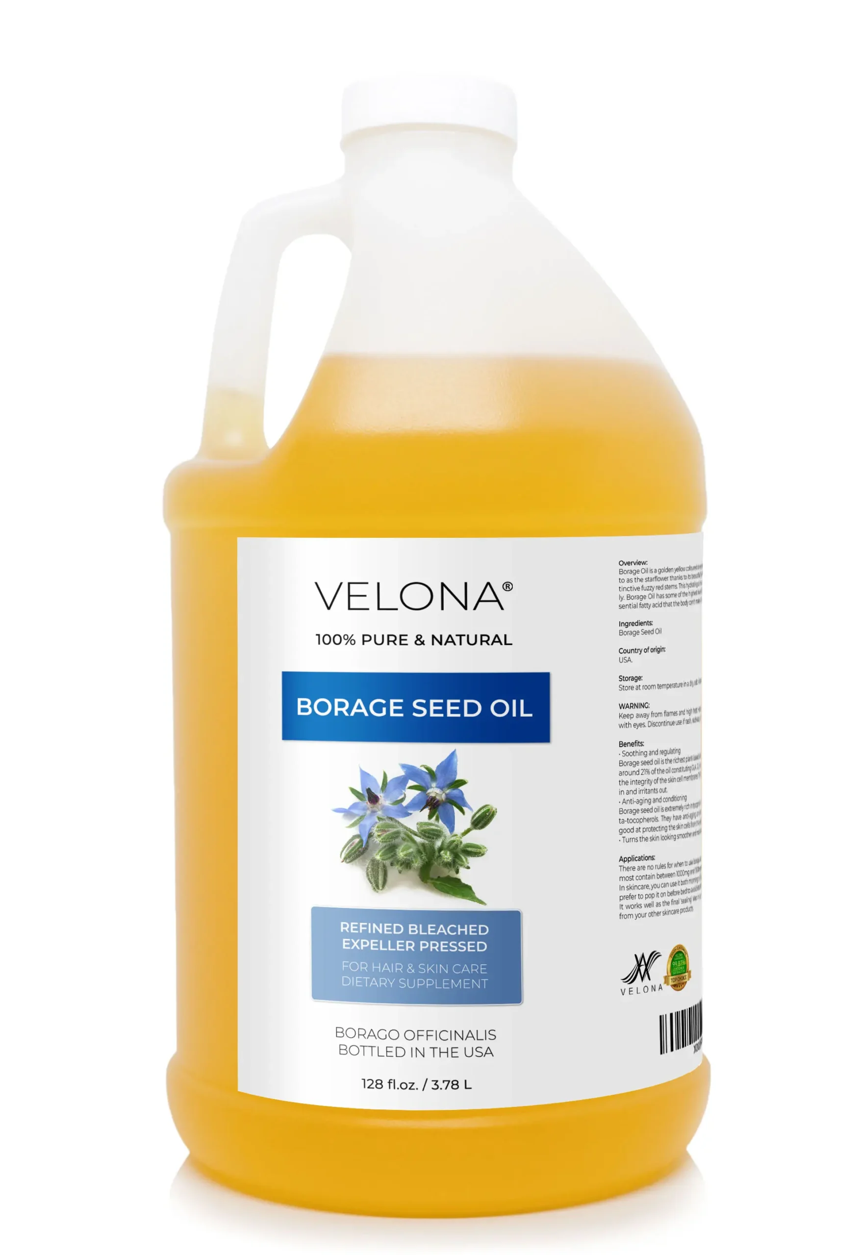 100% Pure and Natural Borage Seed Oil. Refined, expeller pressed, free from additives, fragrance, and synthetic compounds.