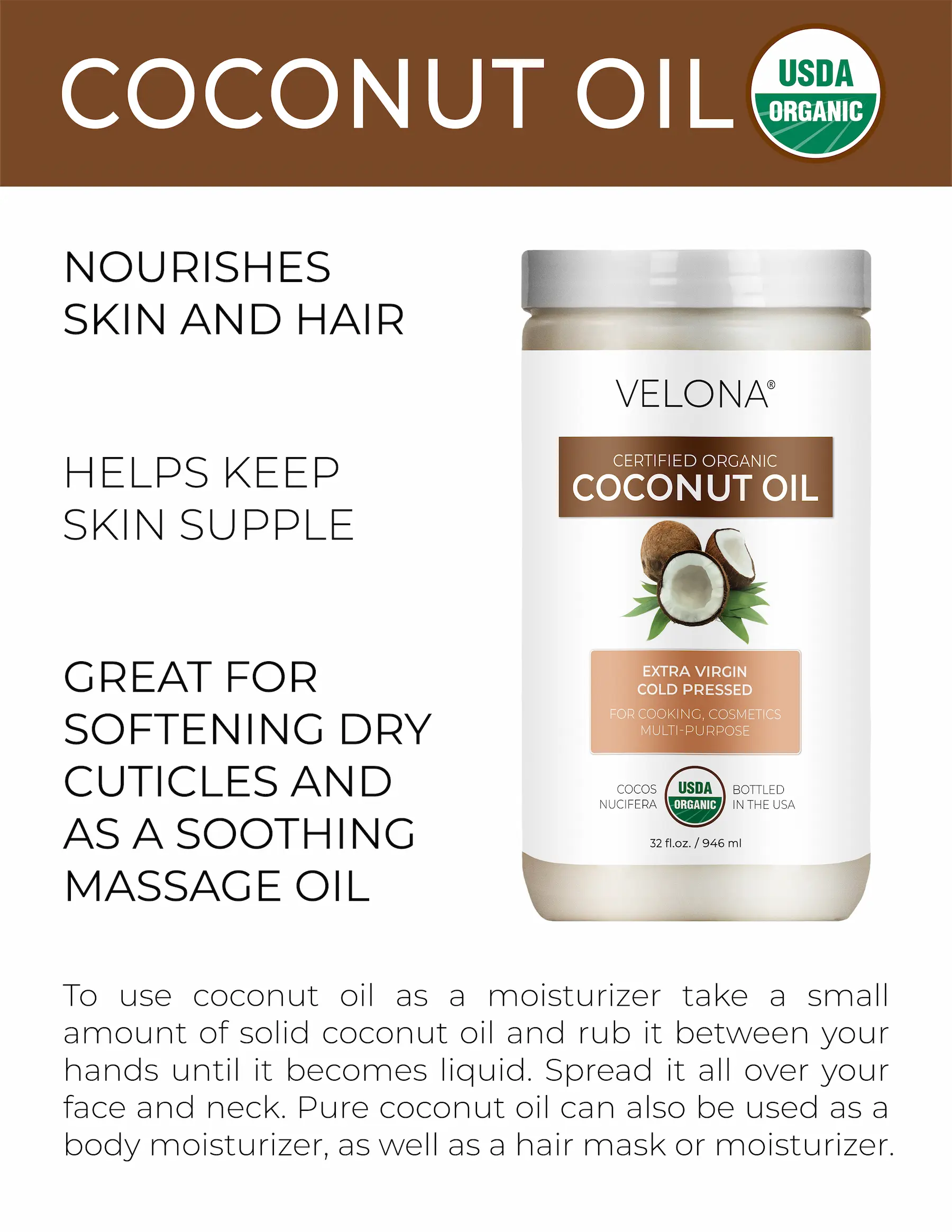 USDA Organic and 100% Pure and Natural Coconut Oil. Free from additives or synthetic compounds. Embrace the natural goodness.
