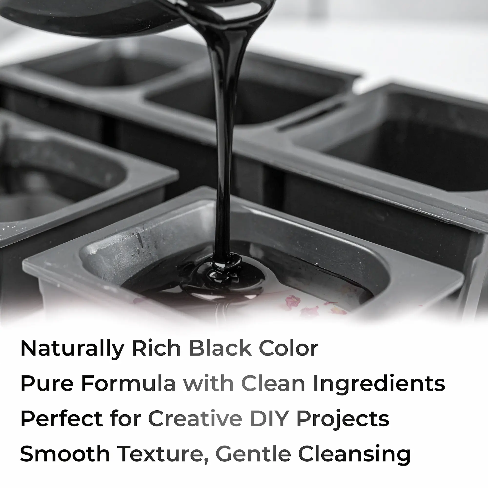 Create unique soaps with our black coal melt & pour base. Blend in your favorite oils and botanicals with ease. Its rich natural black color and high glycerin content ensure smooth crafting, a sleek look, and a gentle feel.